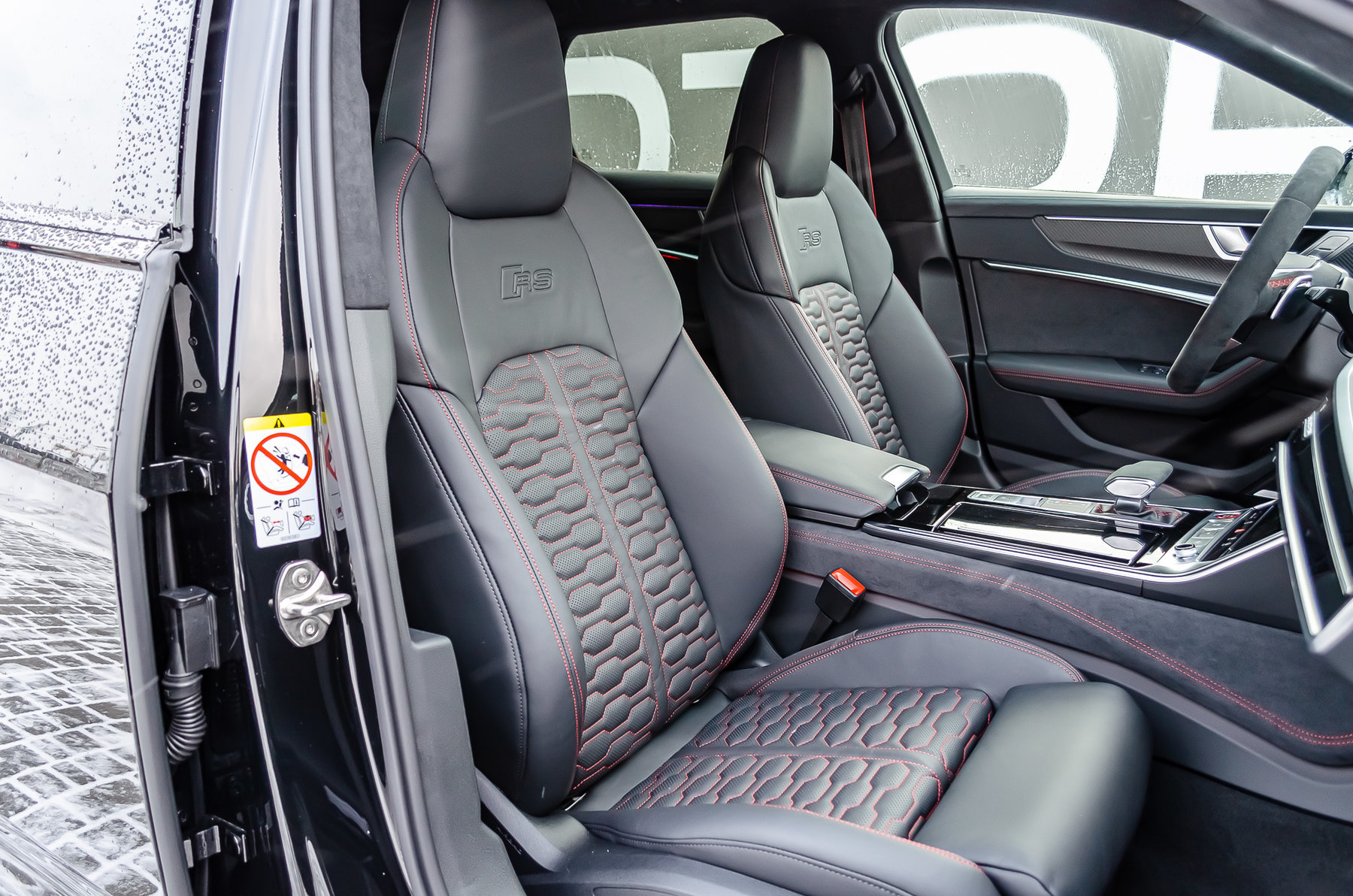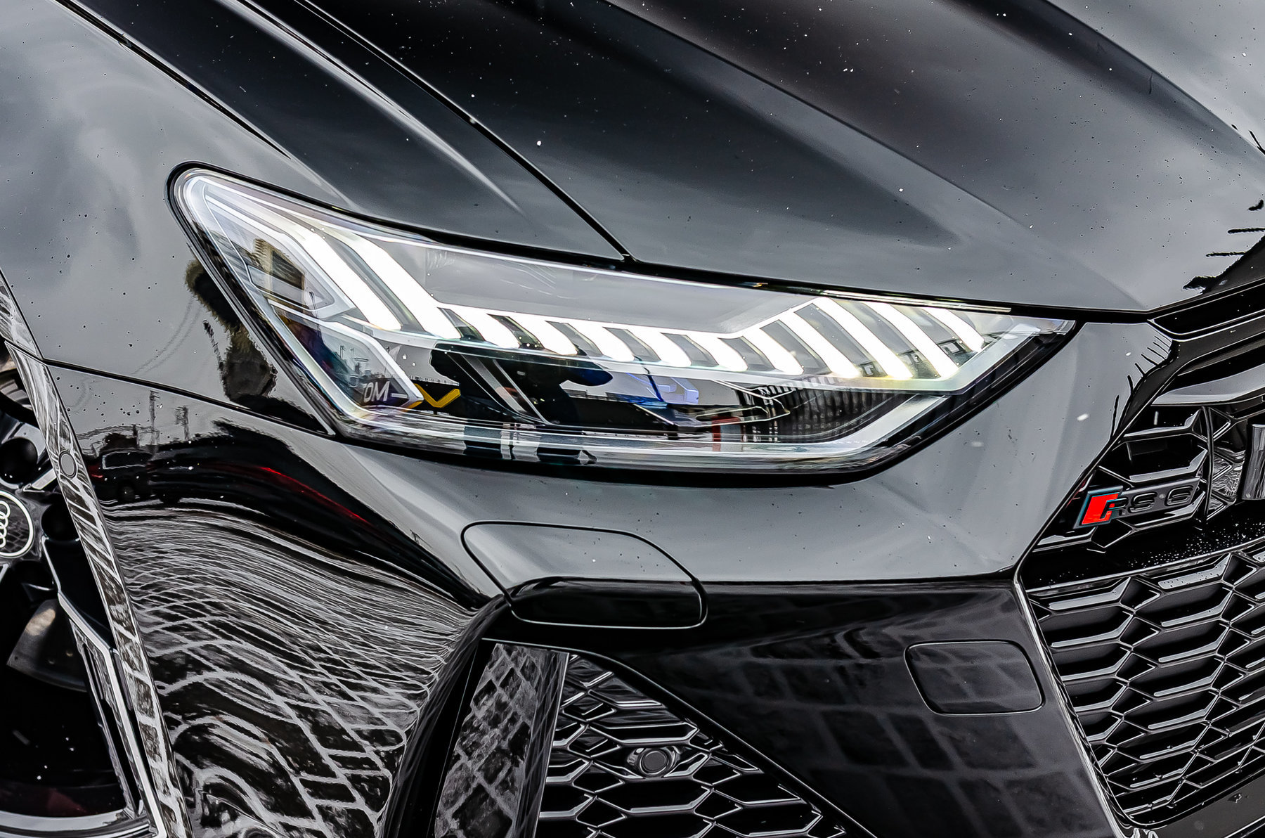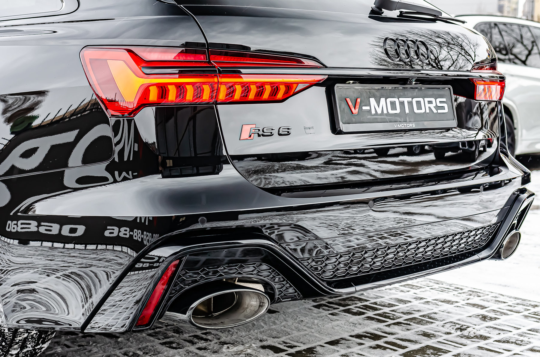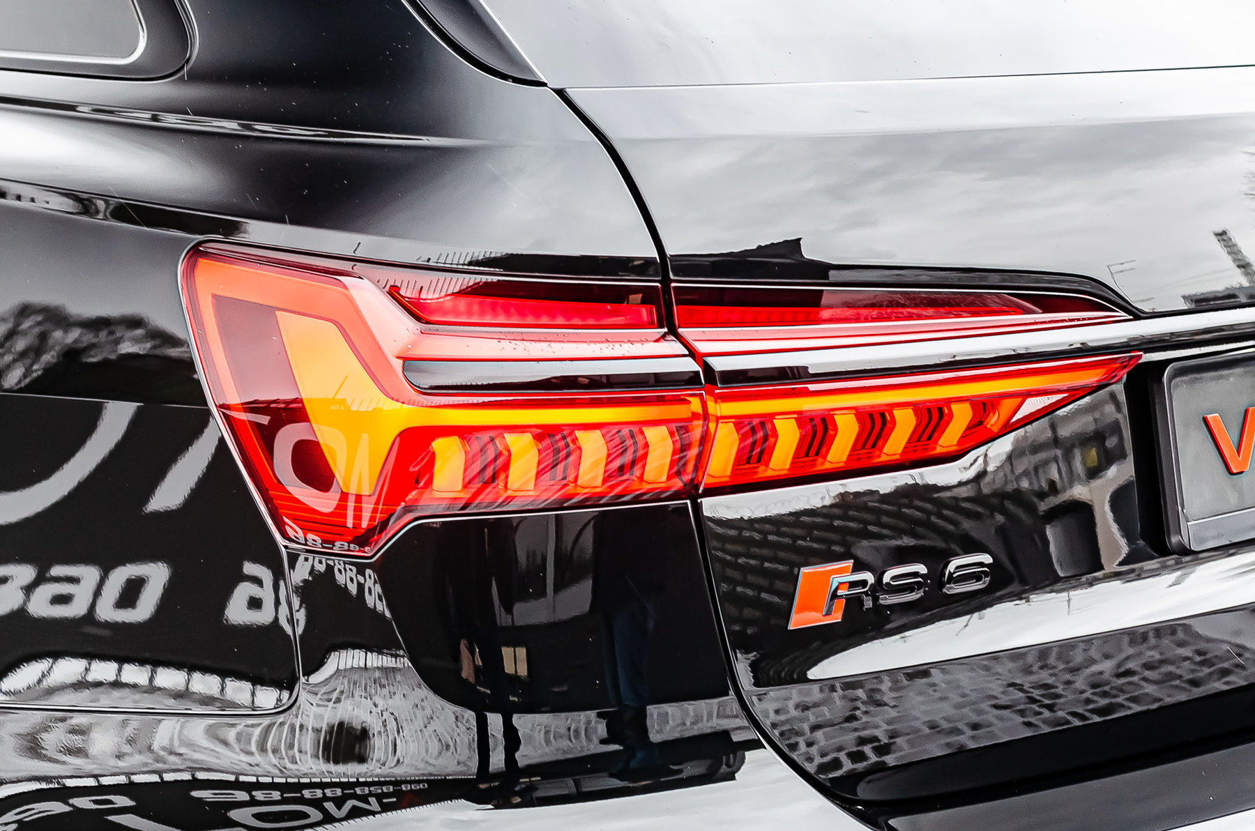 Кольца Audi и надпись RS6 чёрного цвета.