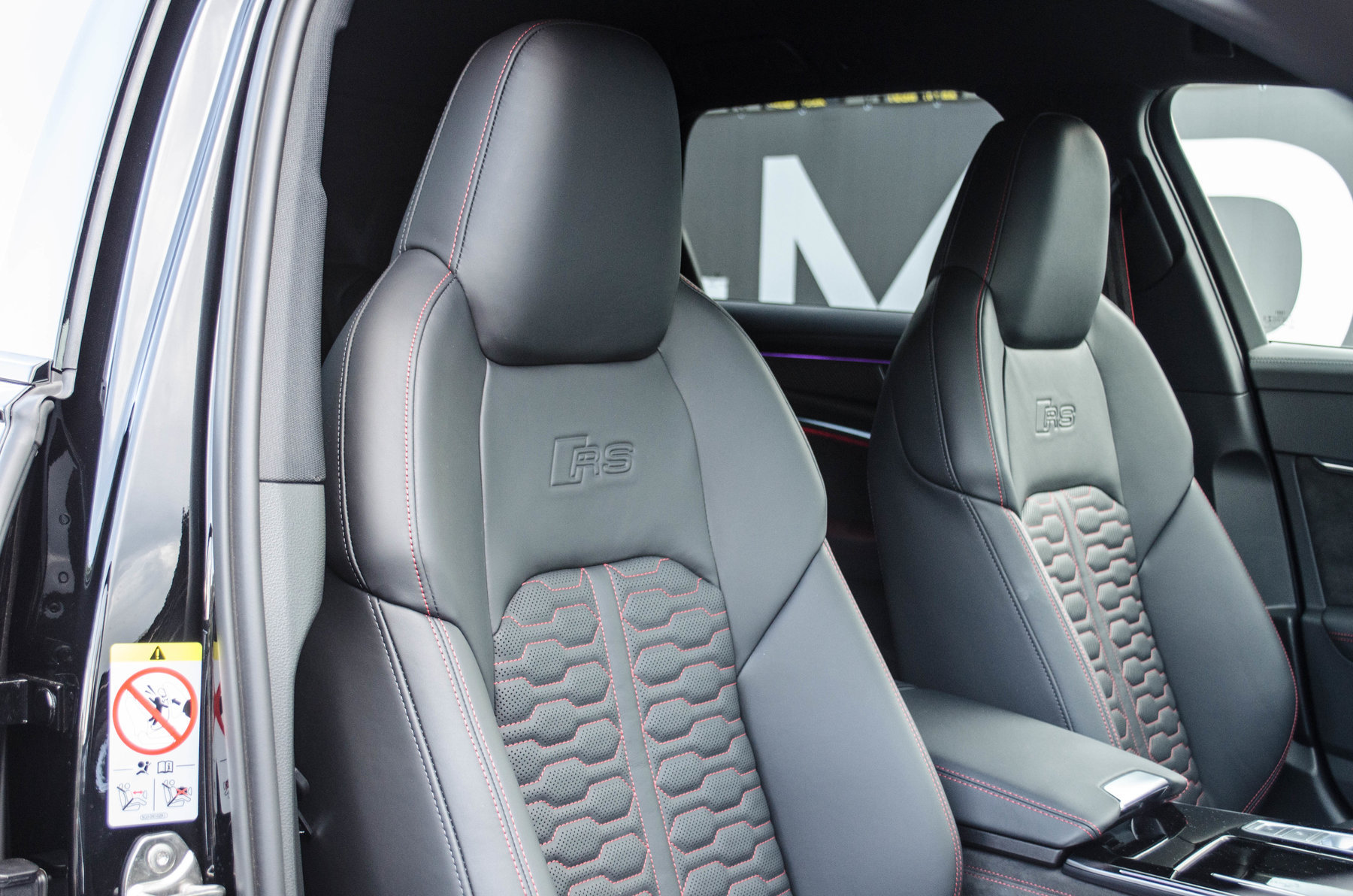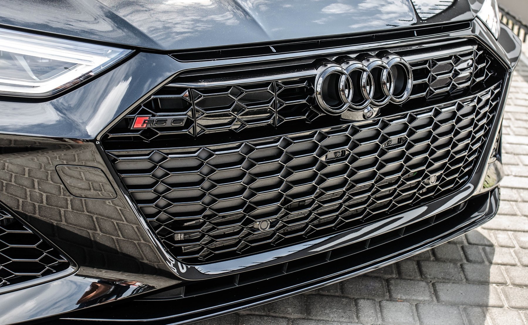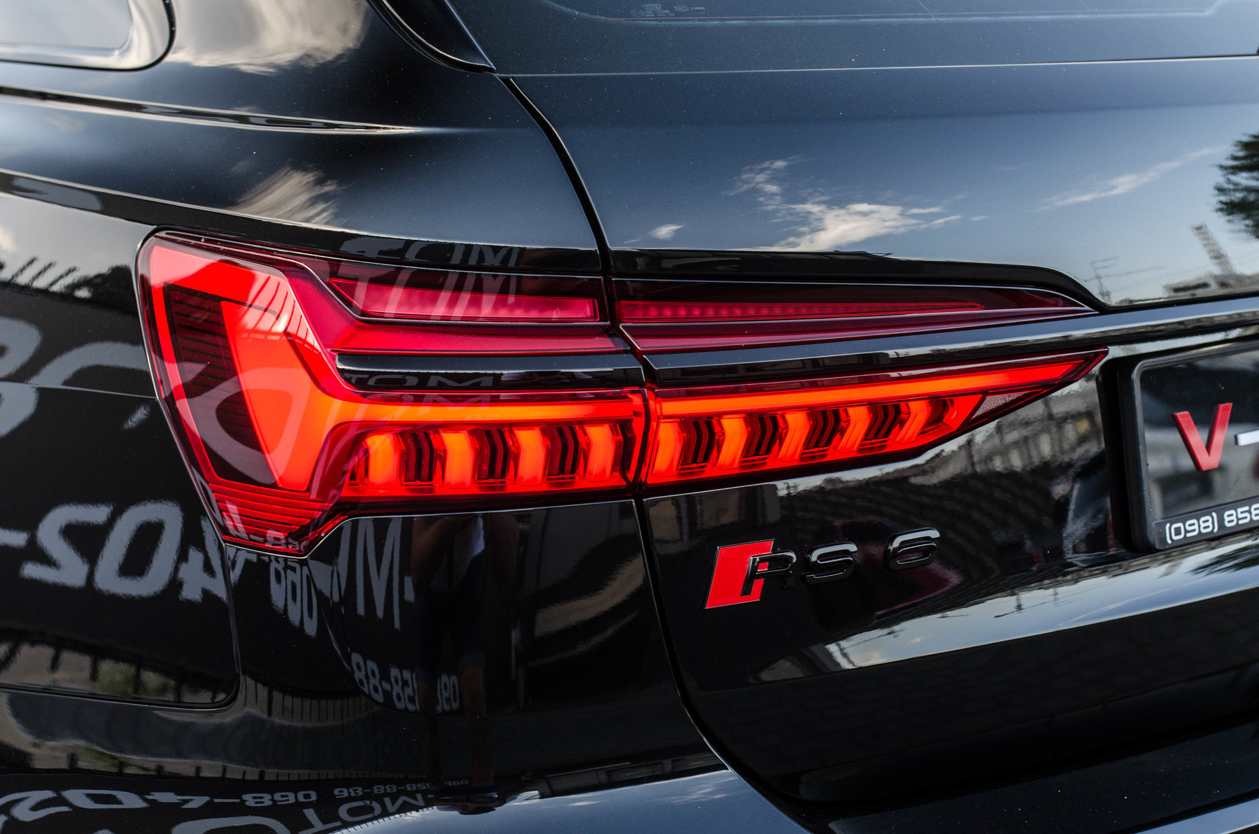 Кольца Audi и надпись RS6 чёрного цвета.