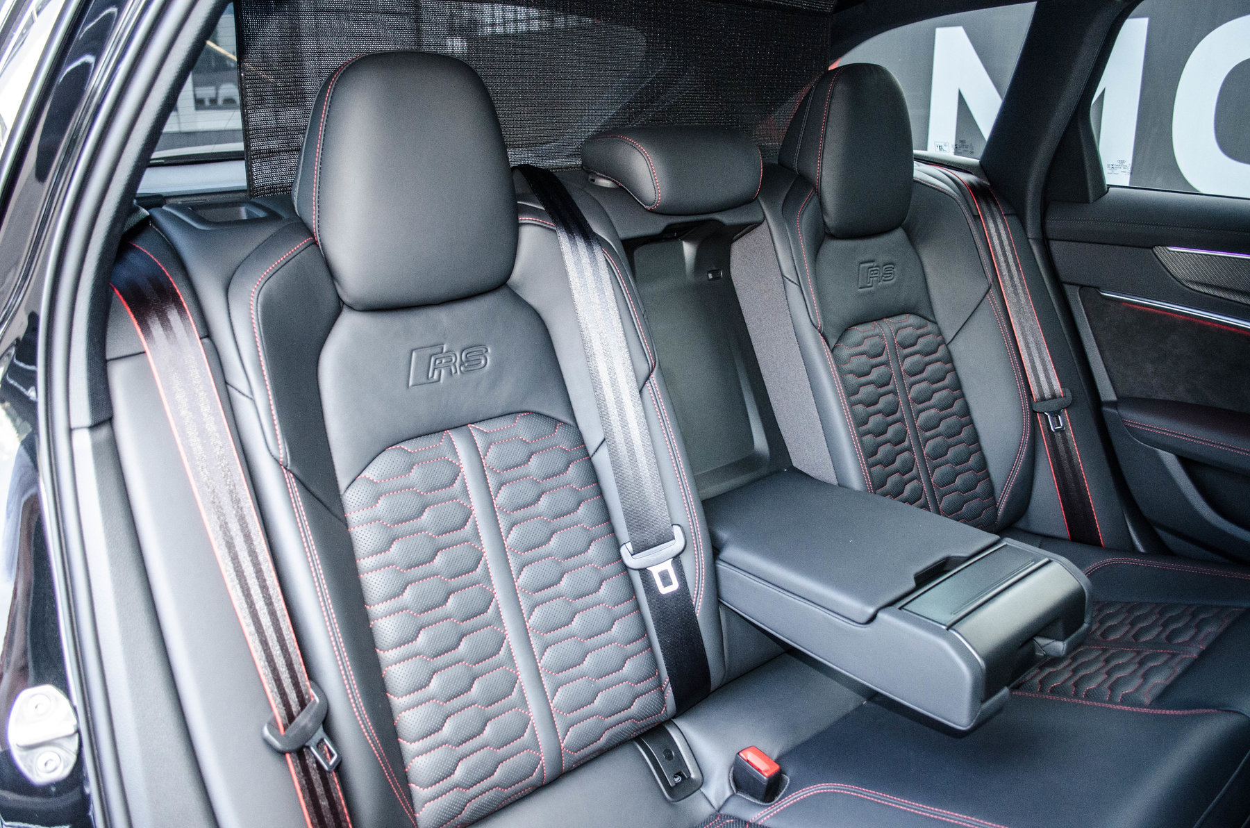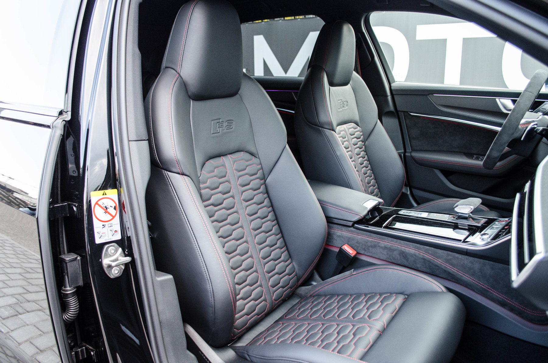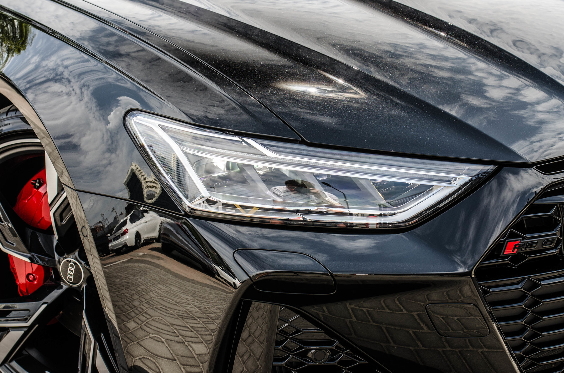 Кольца Audi и надпись RS6 чёрного цвета.