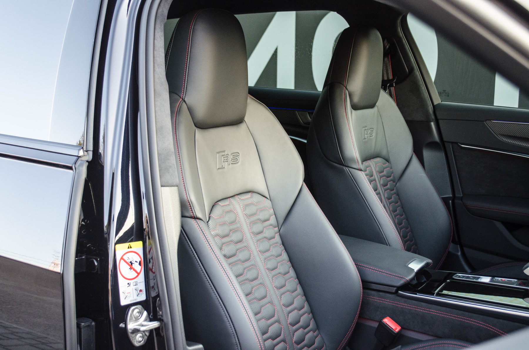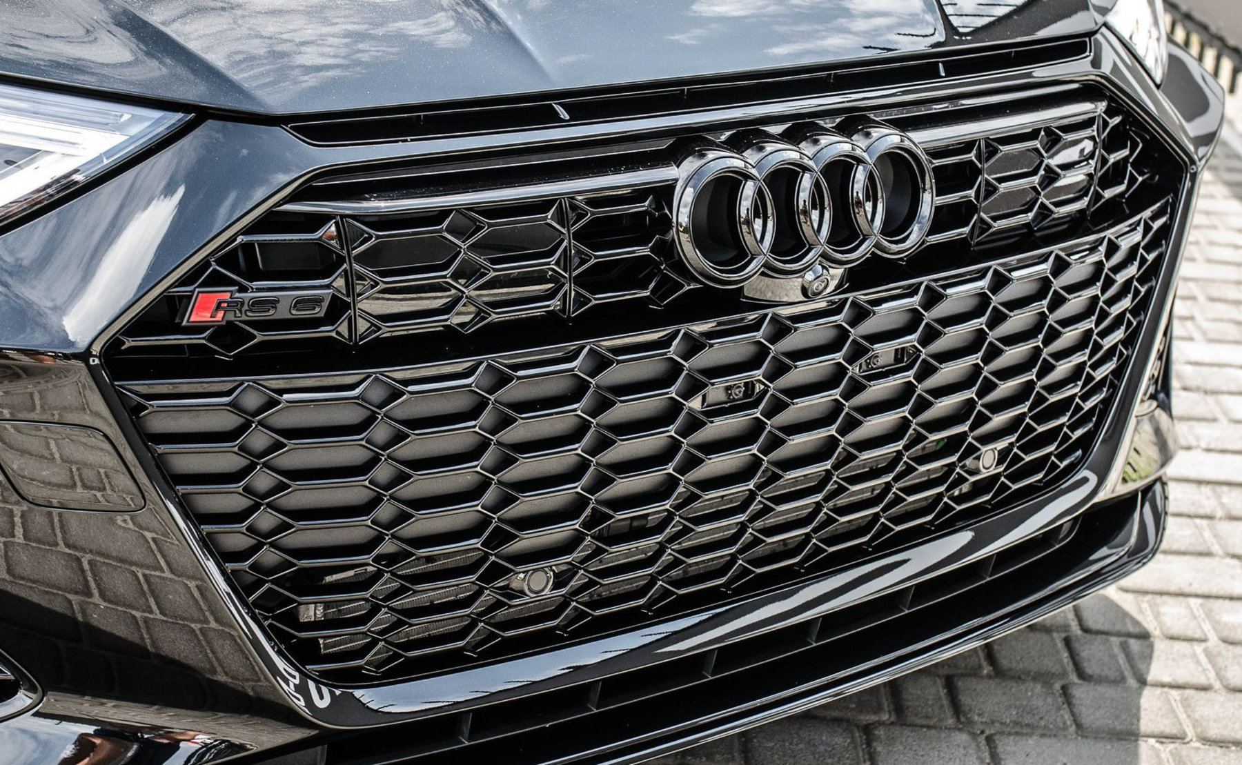 Кольца Audi и надпись RS6 чёрного цвета.