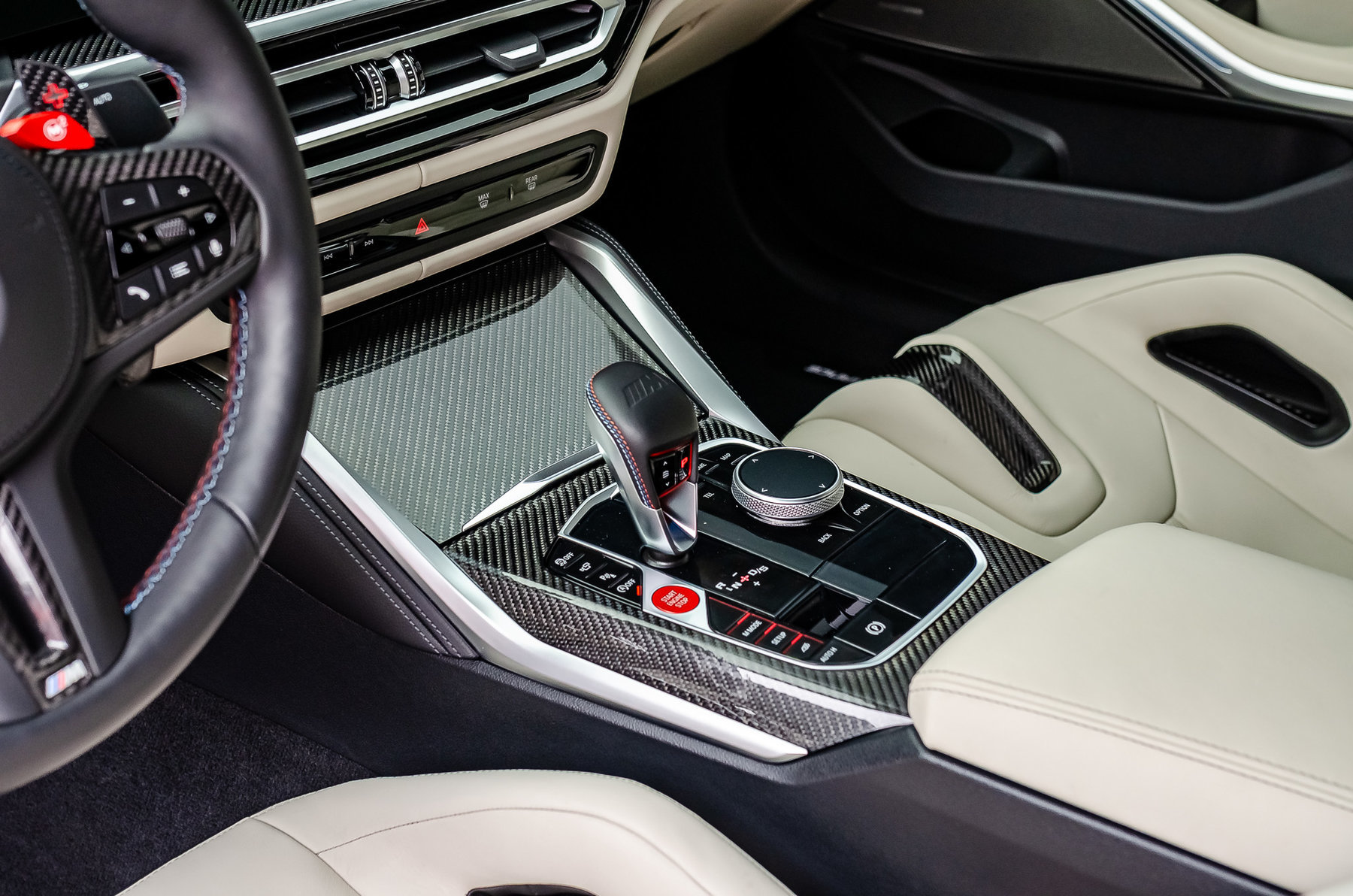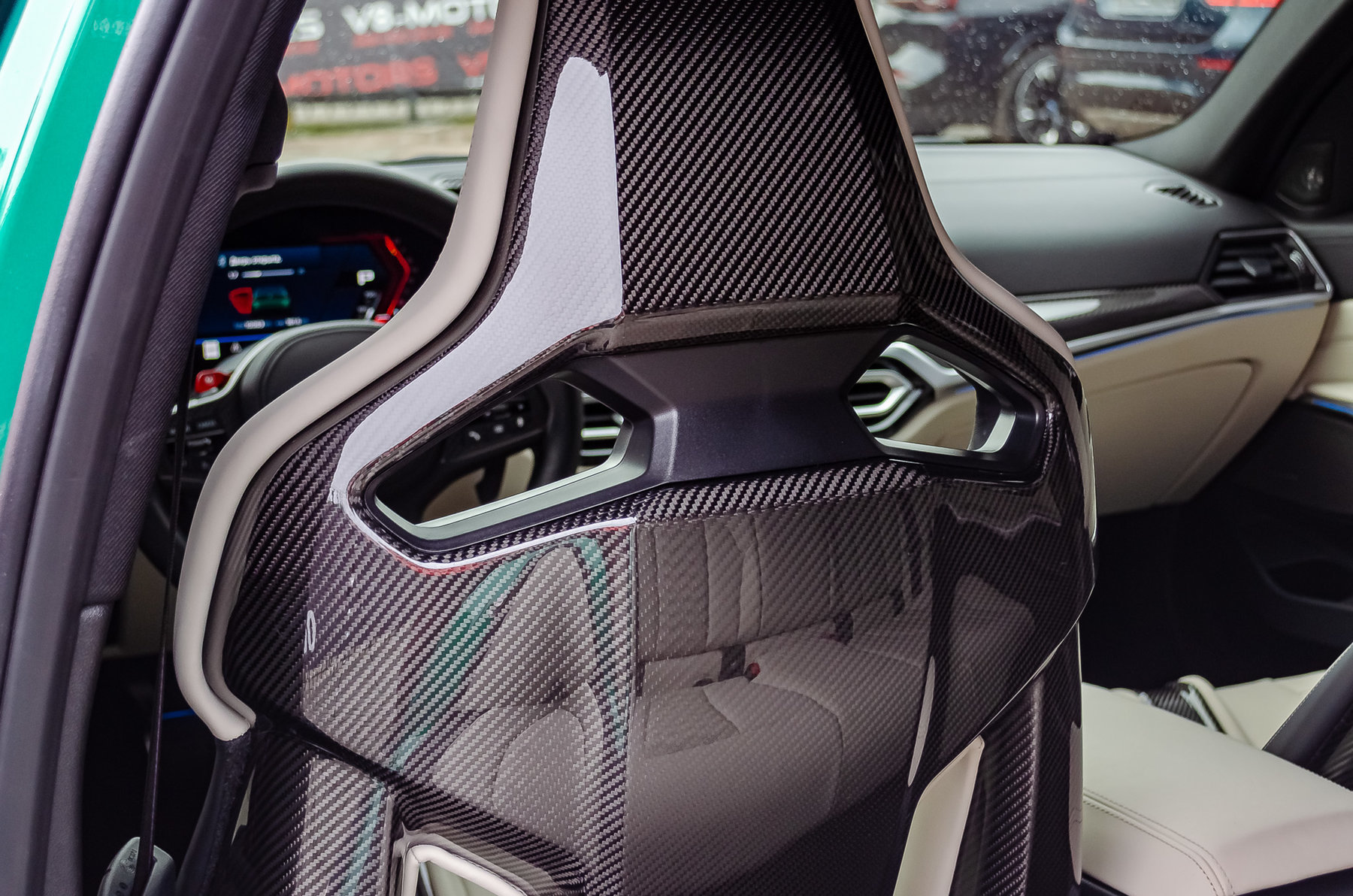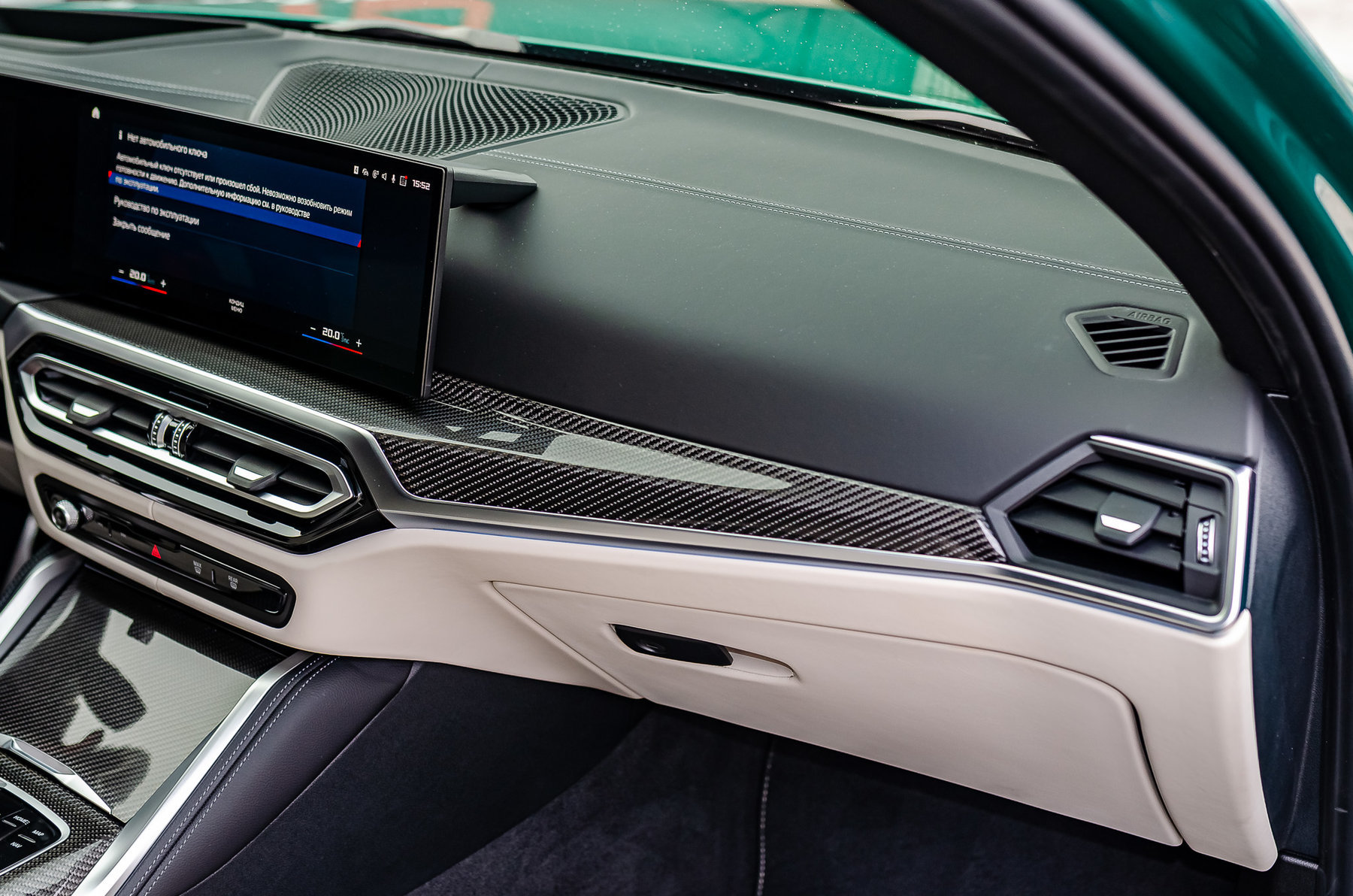 Расширенная отделка карбоном в салоне.