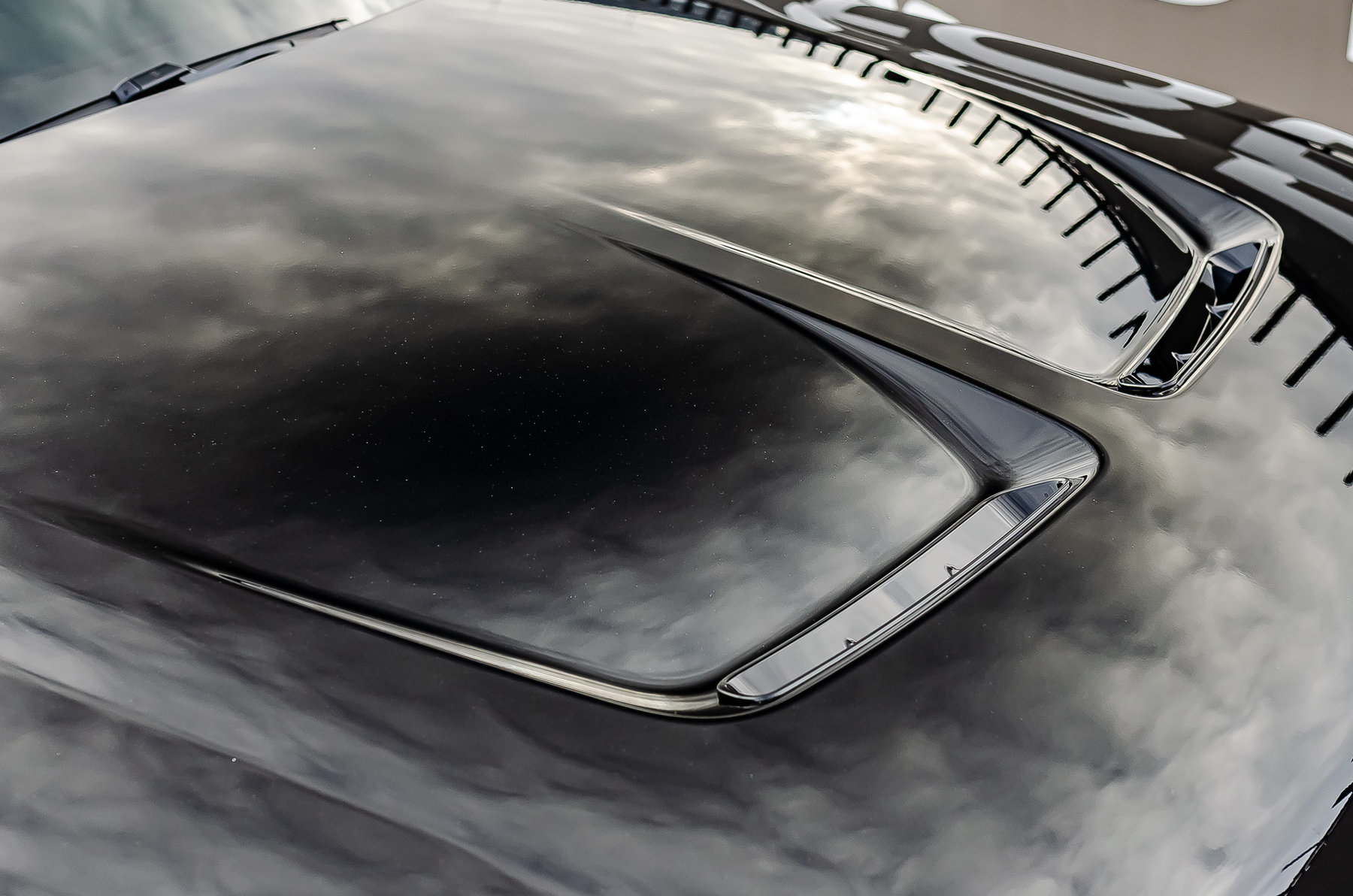 Заводской карбоновый капот с двумя вентиляционными отверстиями.