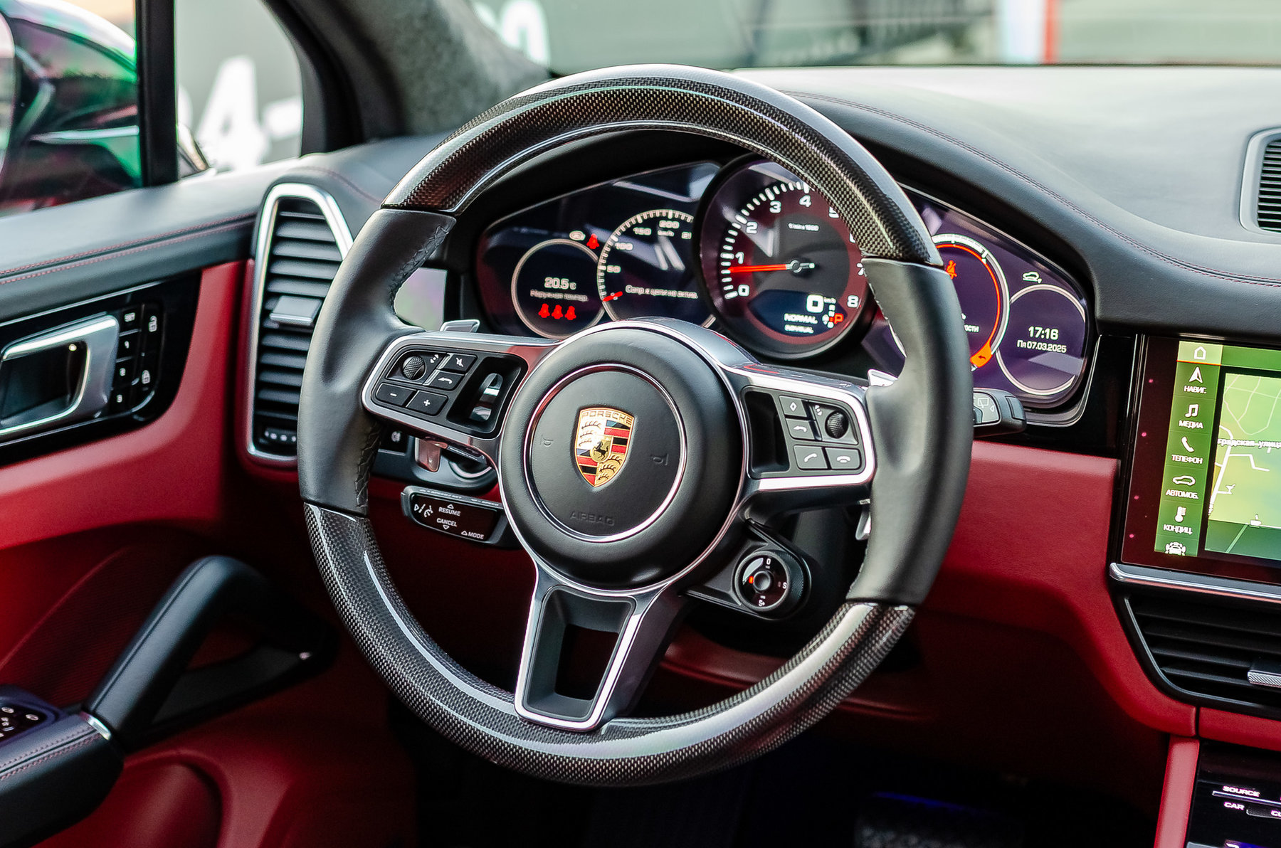Руль с подогревом и отделкой натуральным карбоном.