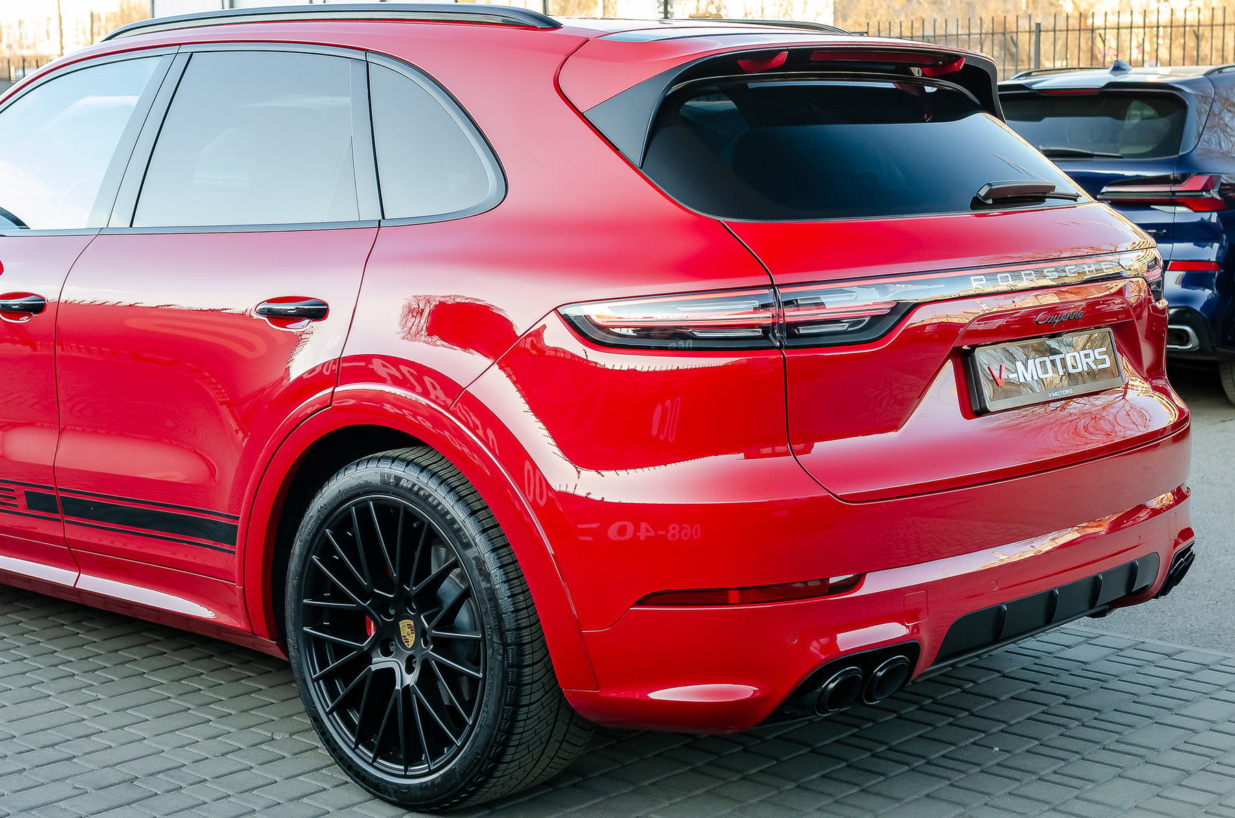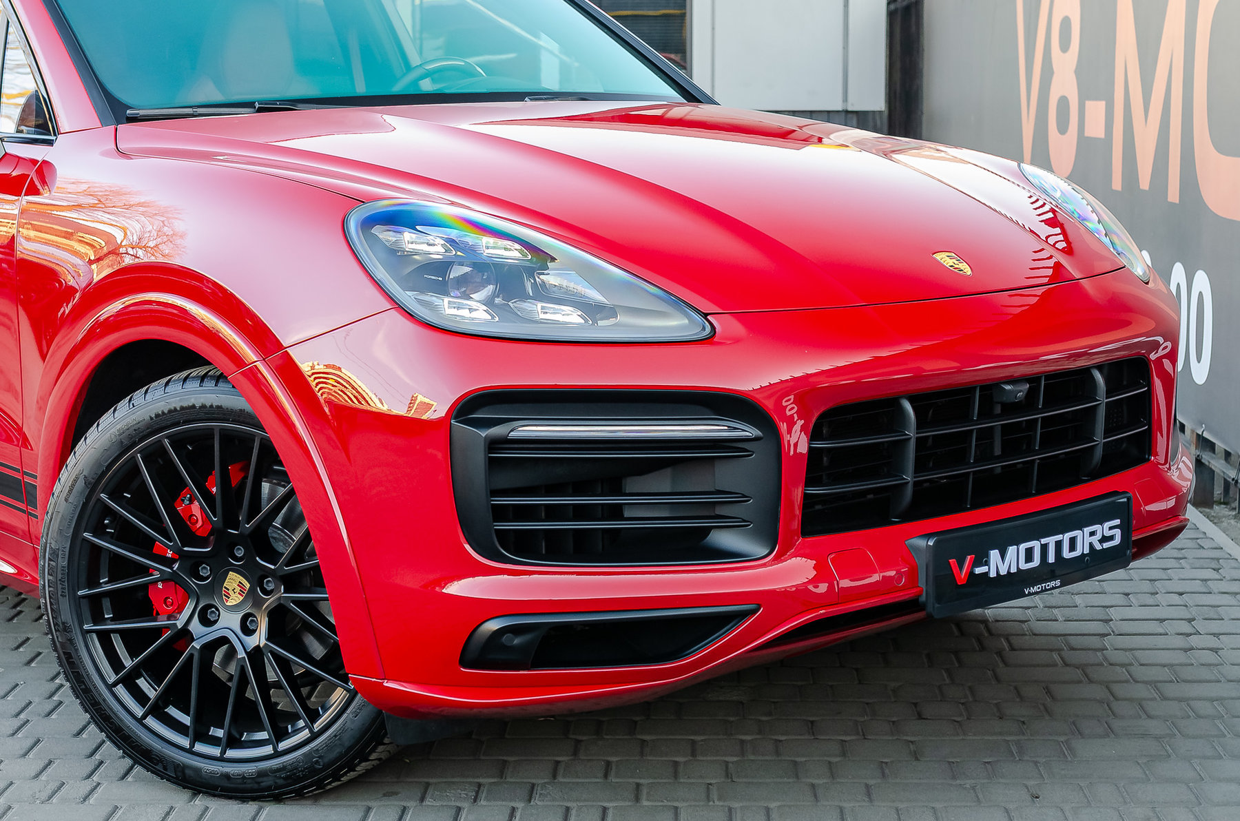 Усиленные тормоза 6 поршневые с супортами красного цвета.