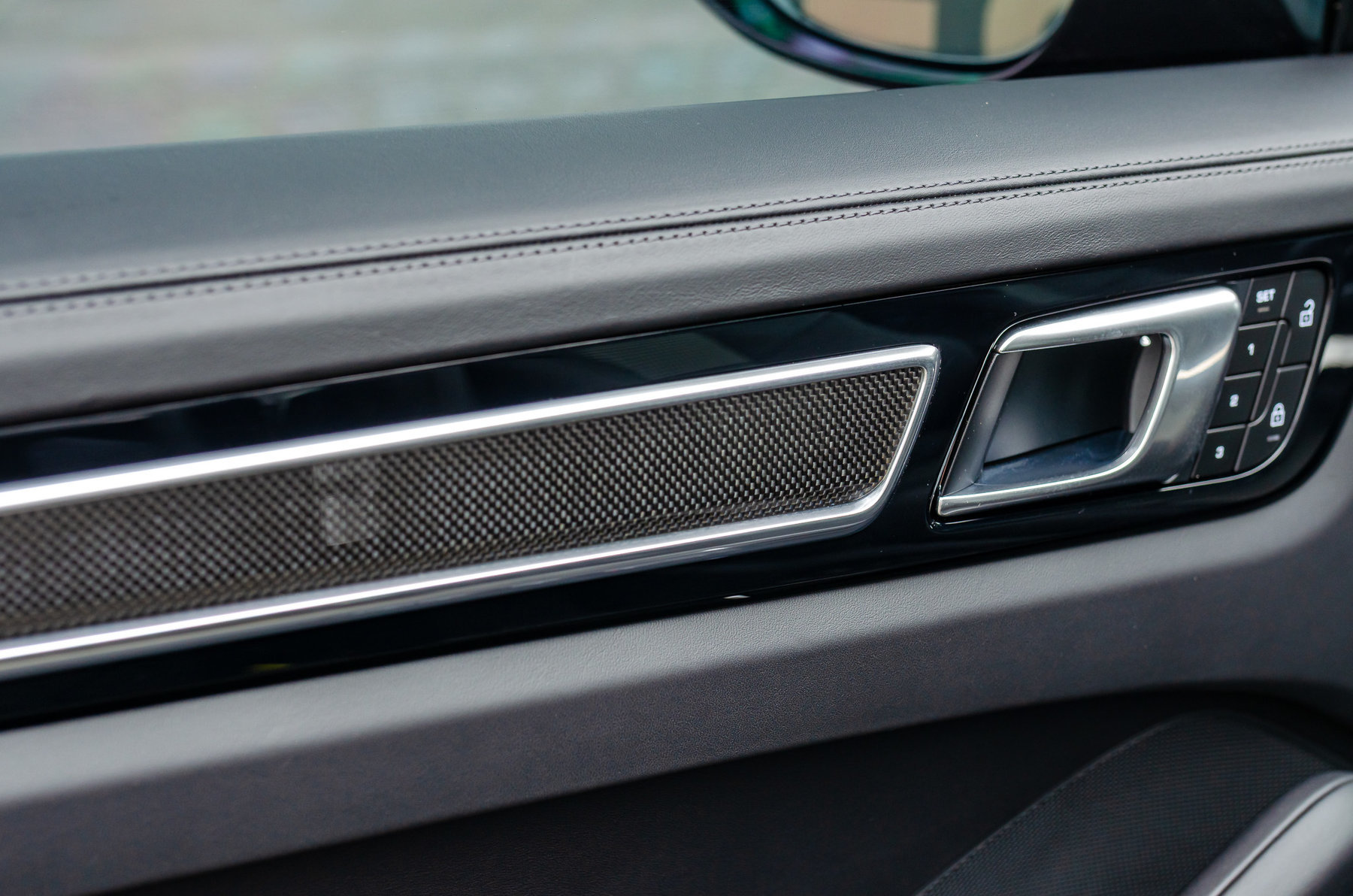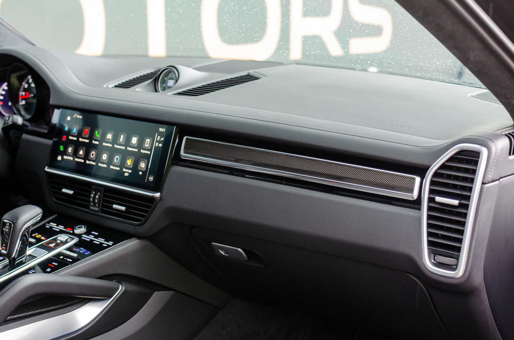Руль с подогревом и отделкой натуральной кожей и карбоном.