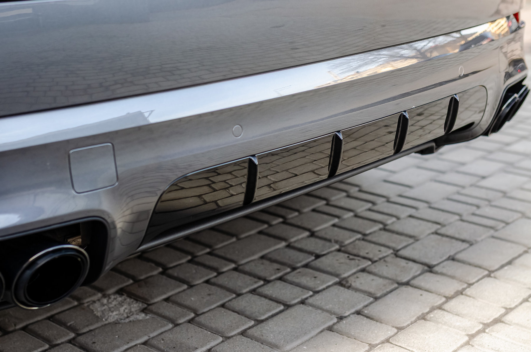 Спортивная выхлопная система с насадками черного цвета и регулировкой громкости.