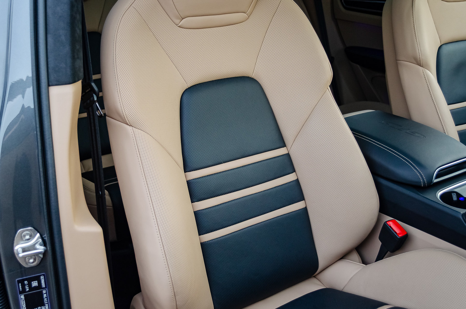 Теснение герба Porsche на подголовниках сидений (Porsche Exclusive Manufacture).