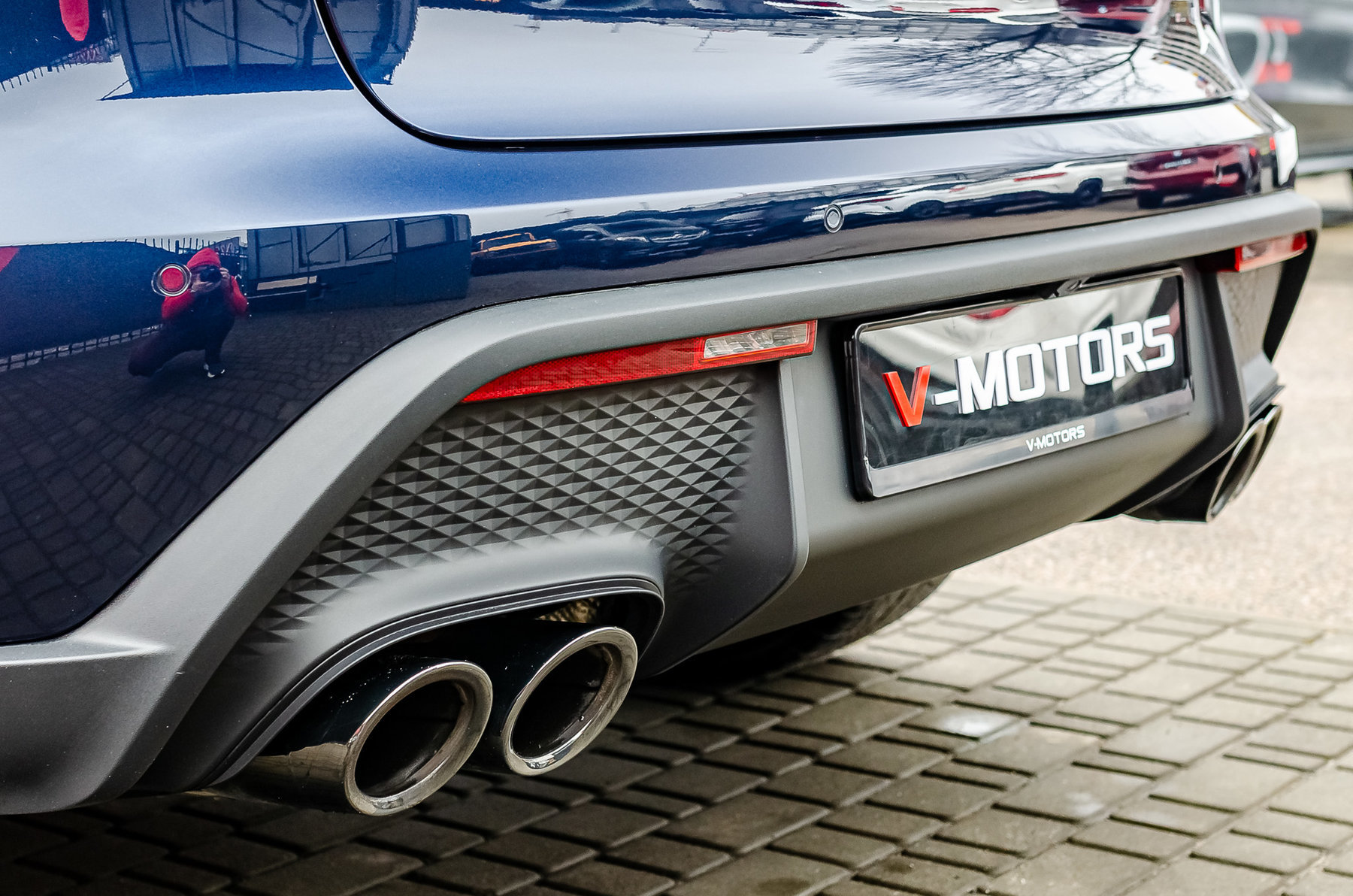 Спортивная выхлопная система с насадками черного цвета.