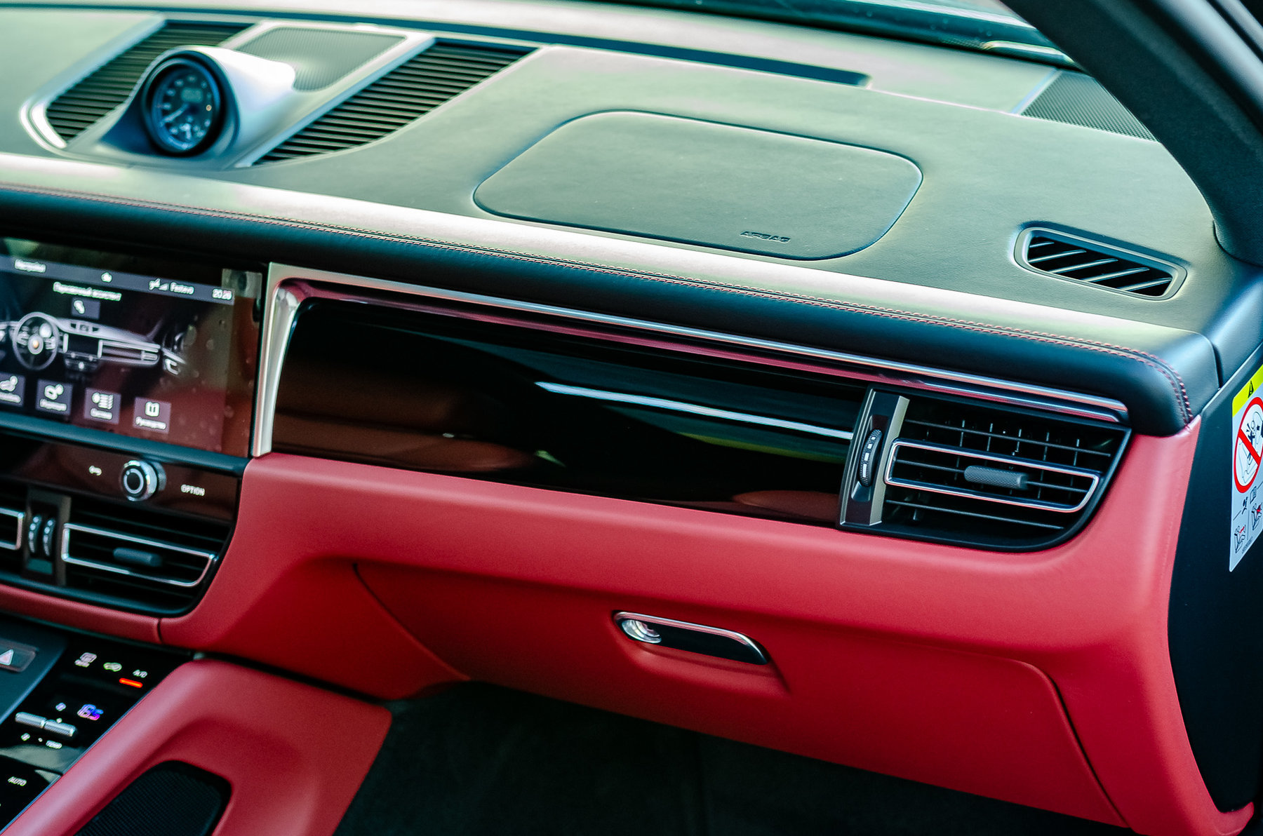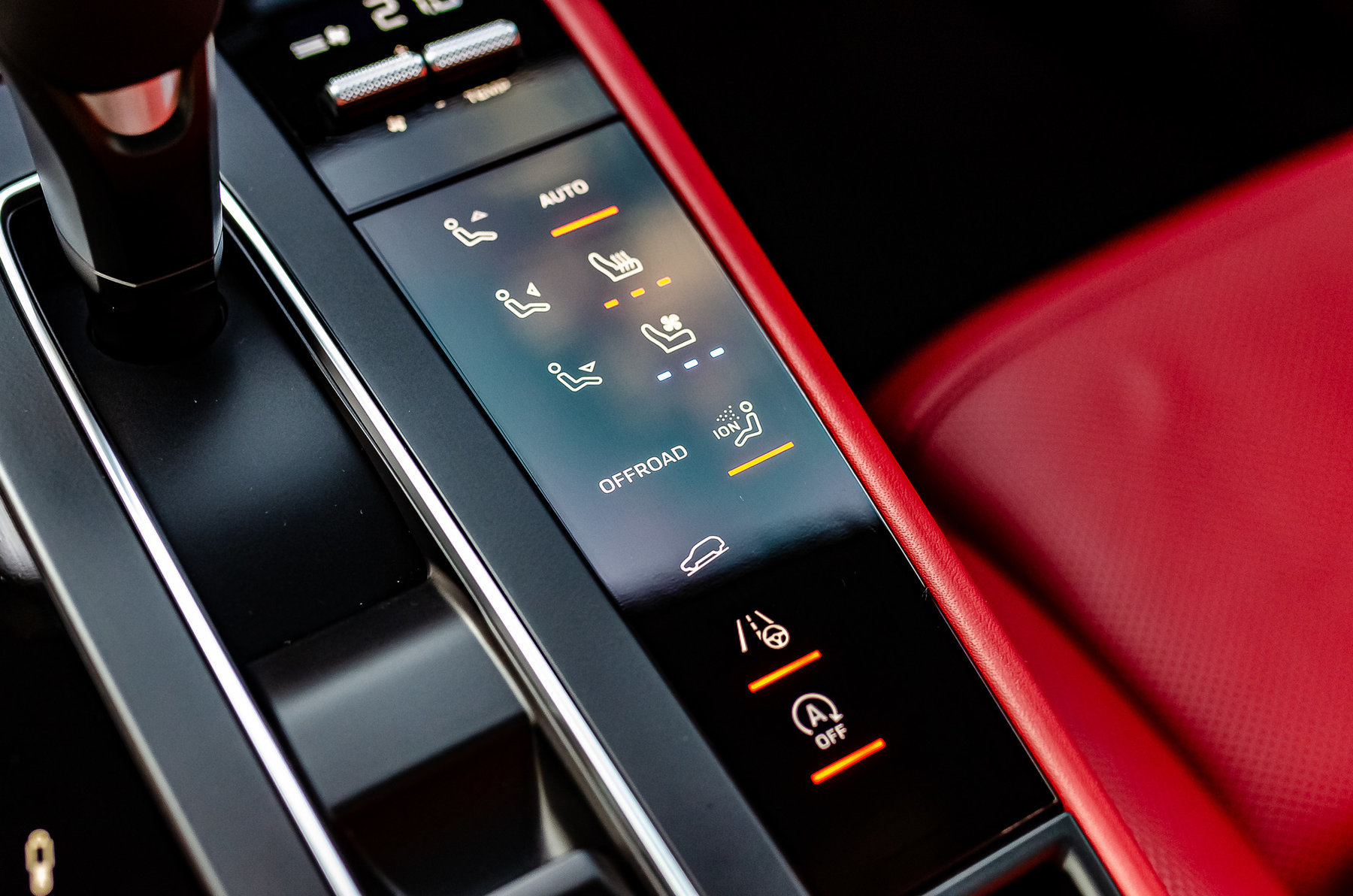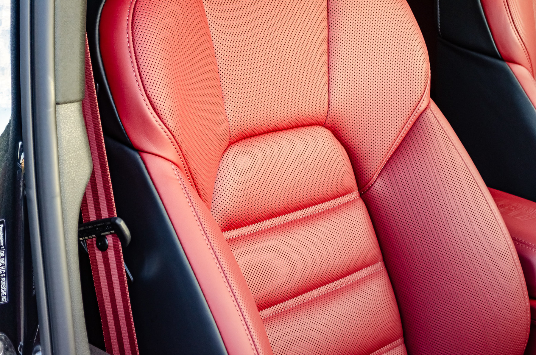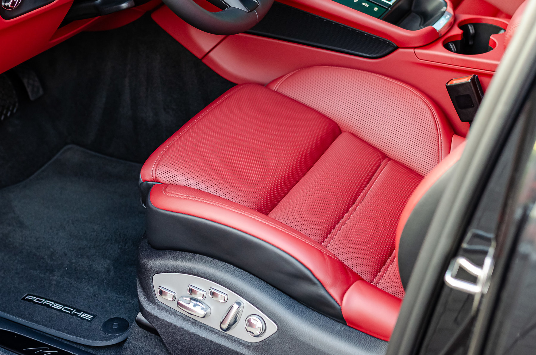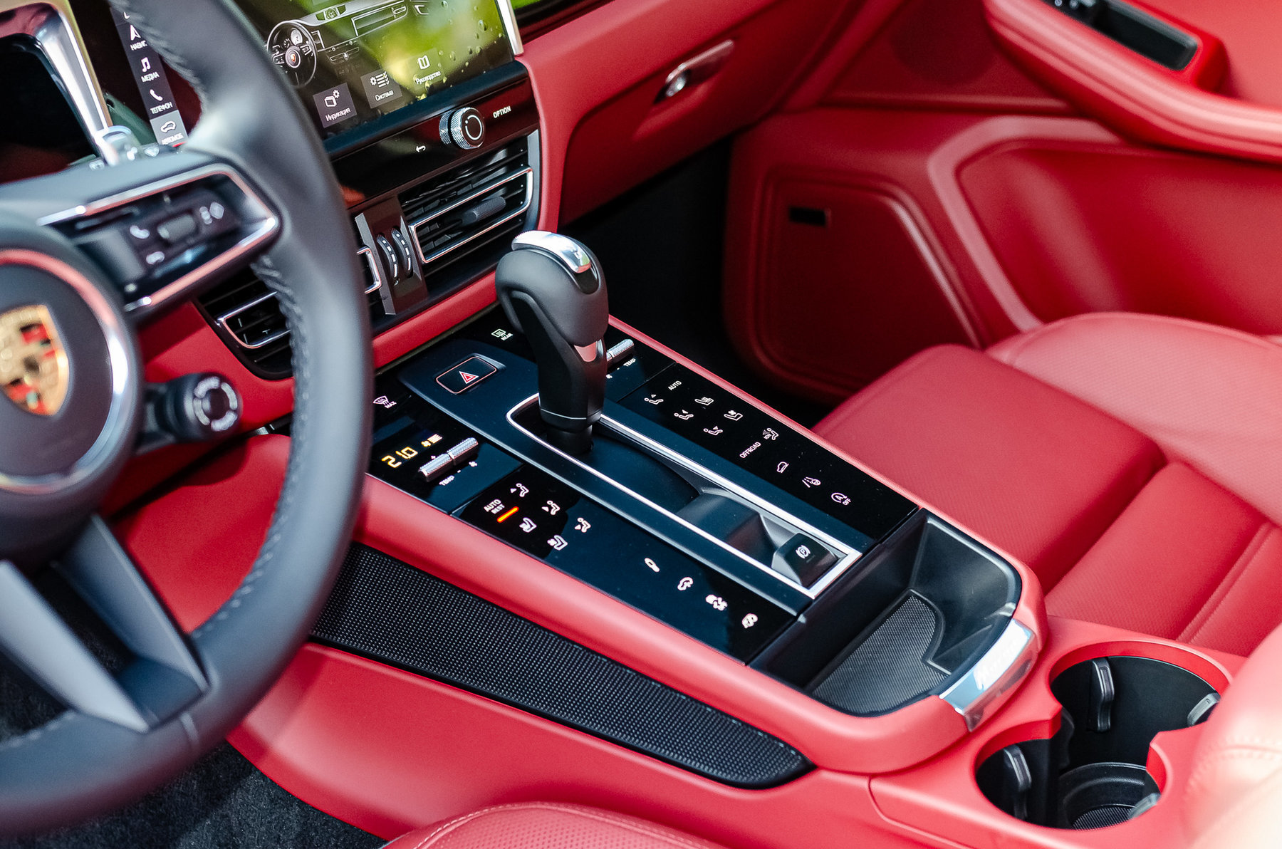 Теснение герба Porsche на подлокотнике.