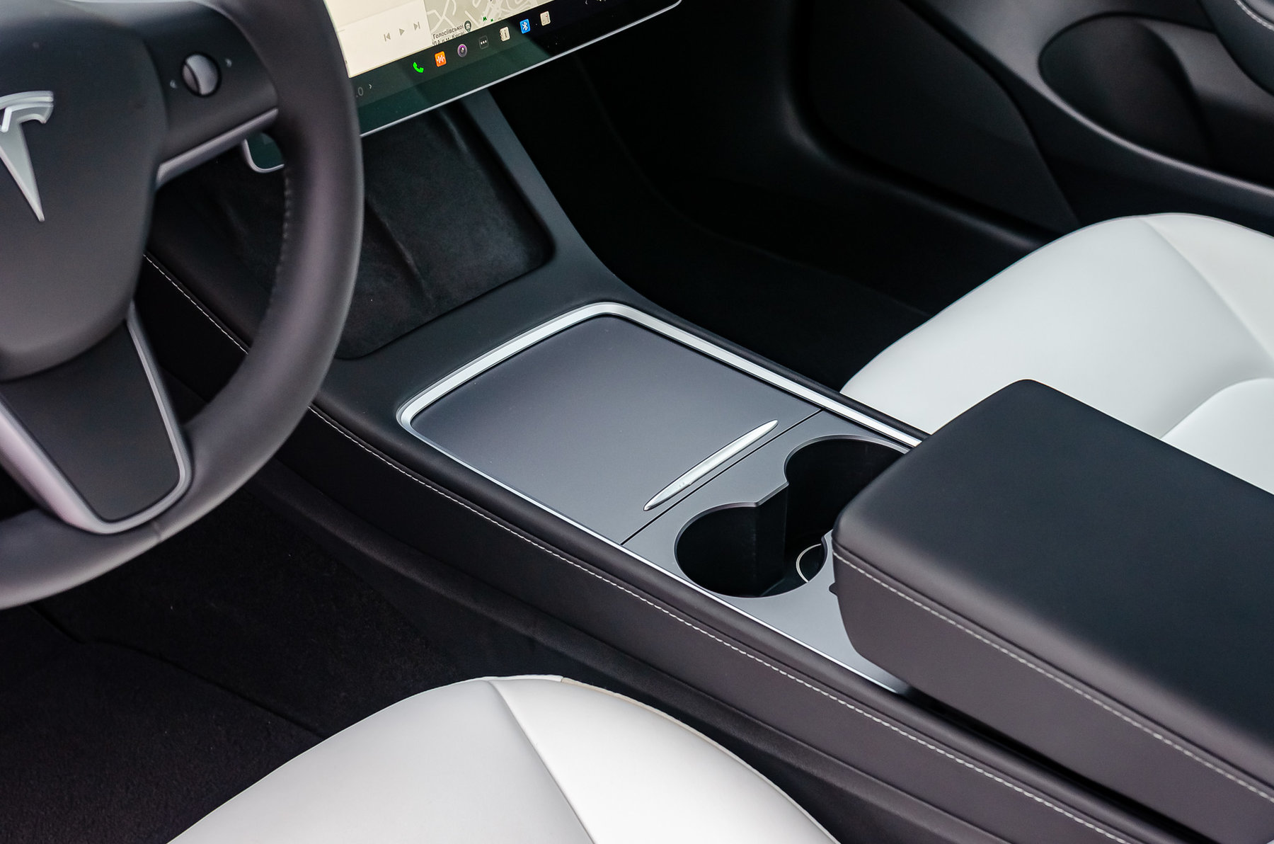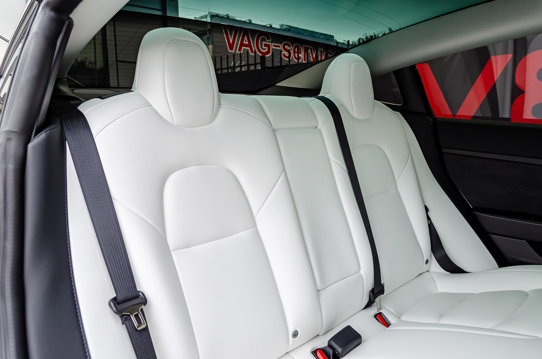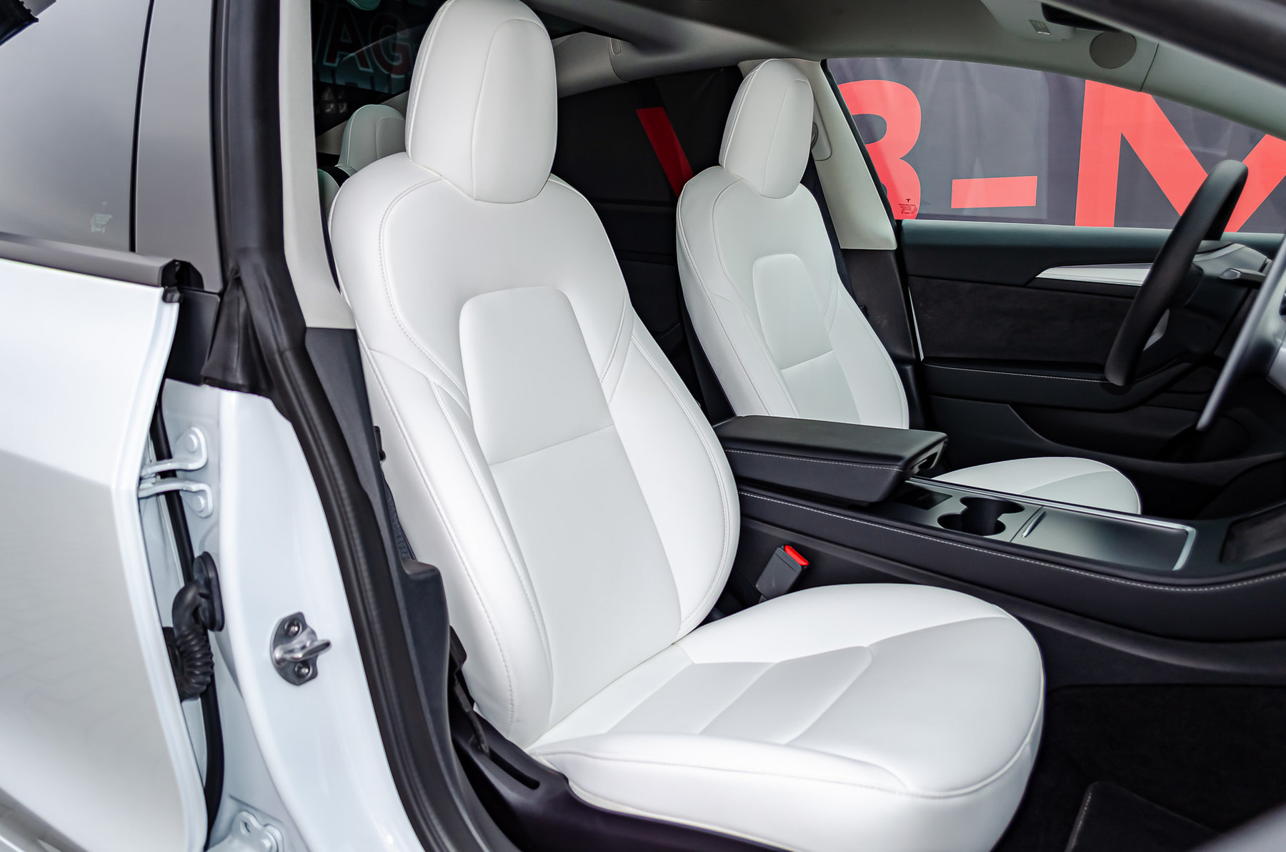 Отделка салона белой кожей.