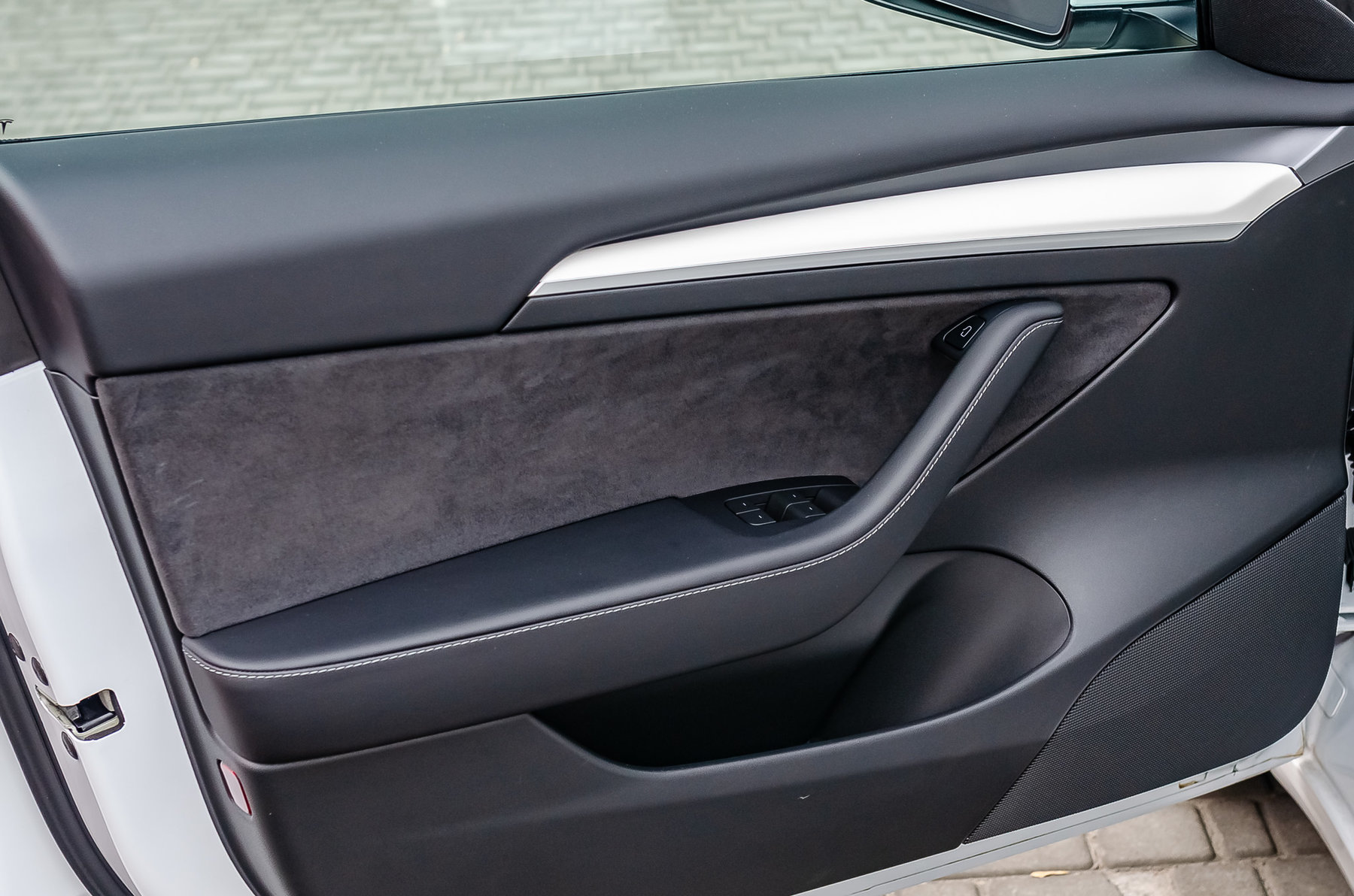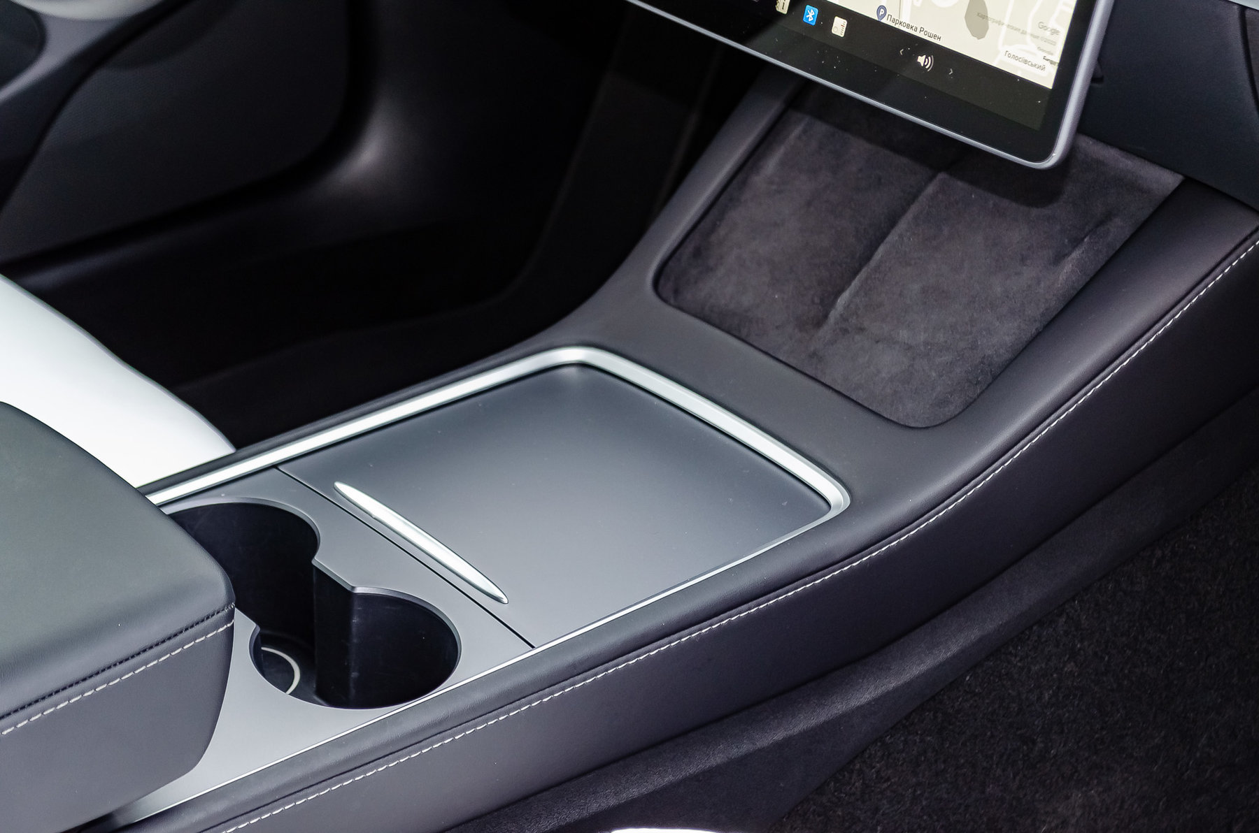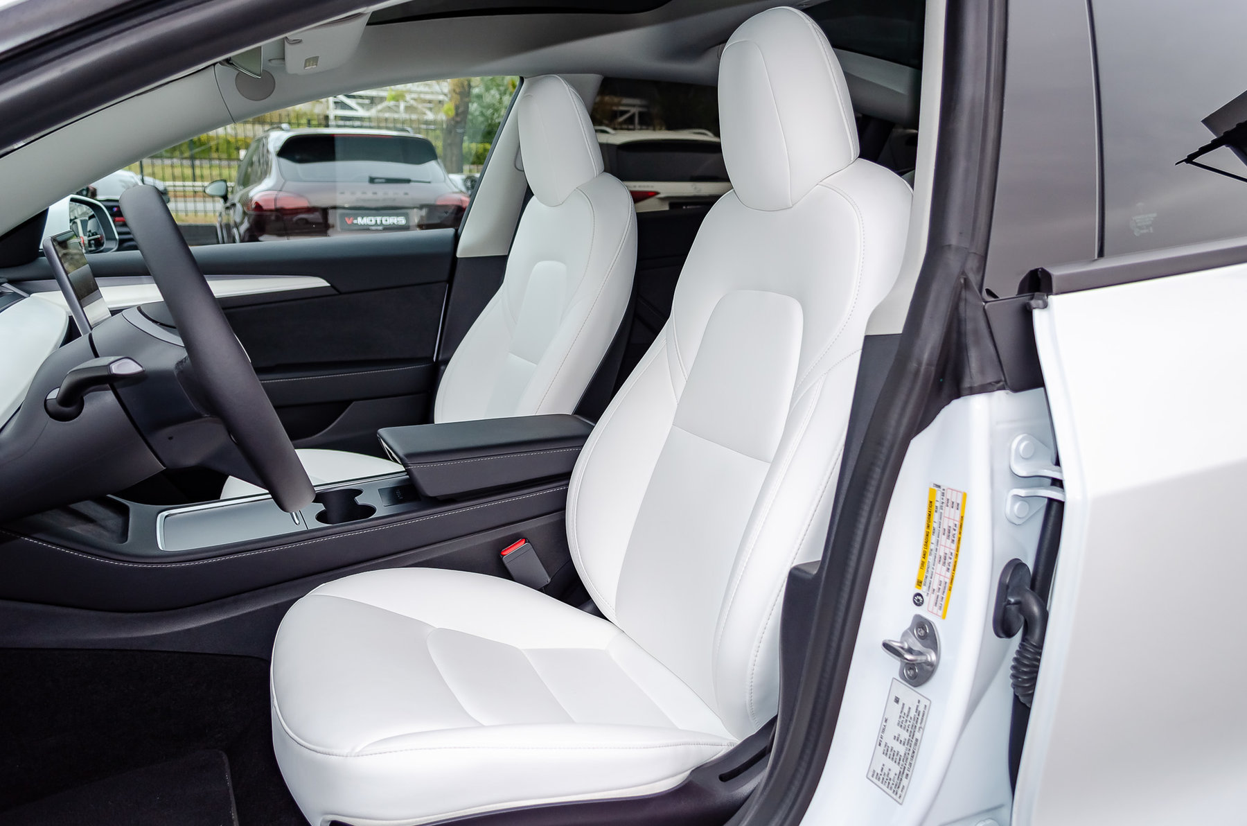 Отделка салона белой кожей.
