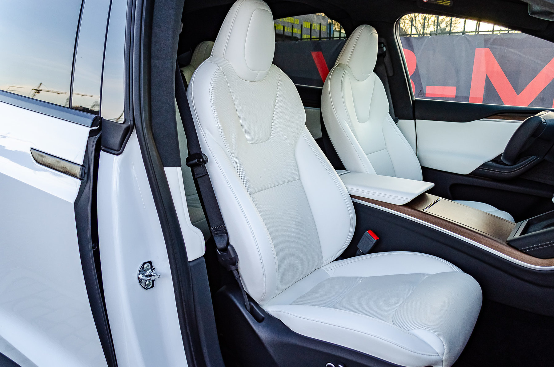Отделка салона белой кожей.